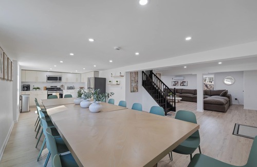 guests have full access to all areas of the home, including the spacious living room, dining area, fully equipped kitchen, and mudroom Enjoy the laundry room with washer and dryer for your convenience. You can explore all the bedrooms and bathrooms on the 2nd and 3rd floors, and relax in the cozy lounges in both wings. Guests are welcome to enjoy the outdoor spaces and common areas as well. Please note that some storage spaces and utility areas are private and not for guest use.
