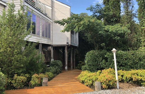 three bedroom house, sleeps 6 Two block walk to the beach and steps from the entrance to First Landing State Park. Large balconies on both floors. Parking for three cars. Full kitchen, washer/dryer, wifi, tv, outdoor shower, jetted tub in master bathroom. Family friendly.