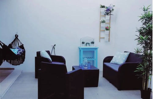 The house is extremely spacious with three bedrooms (one of them with a bathroom), one big living room (with a fireplace and an area for children), a dining room, and a kitchen, spread through 2 floors (one common bathroom per floor). You also have two outside areas: A small one at the front door and a big one in the back, equipped with a barbecue (with shade), water, seating, and an eating area.
