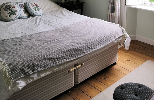 three public rooms; lovely family kitchen with open fire can seat 10 Fully fitted with double oven, dishwasher, microwave and full height family fridge. South and west expansive views. Sitting room with open fire, sofas and armchairs with south views. Collection of family box games. Television and DVD player.Small parlour dining room to seat 8 with beautiful west views to gardens and open views. Utility room with large freezer, washing machine, tumble dryer and second dishwasher, boot room for drying and wet storage and double/twin bedroom with ensuite and external door.