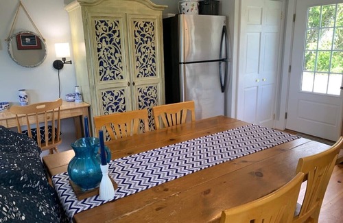 Beautiful antique waterfront property on Round Pond Harbor. Fully renovated inside and out, while retaining original 1828 charm. The Townhouse, which is attached to the main house, has 2 private entrances and a private waterfront patio with grill. Downstairs great room with beautiful water views has new kitchen, dining area, W/D, family room with sleeper sofa and full bath with shower. Interior has many designer details with wide pine floors throughout. Original 1828 staircase (note relatively narrow and steep) leads up to two bedrooms with queen beds and one additional twin bed / daybed, full bath with tub/shower combo, and amazing water views from both bedrooms. Ample parking at your doorstep. Modern conveniences include internet access, cable TV, and DVD player.