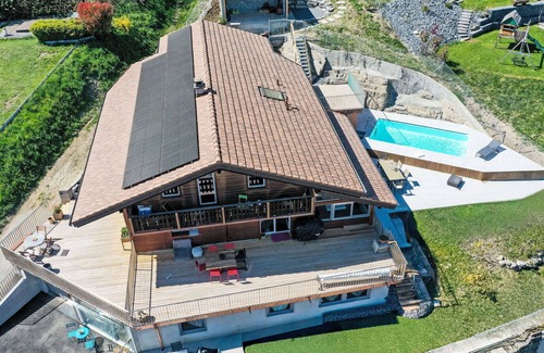 lau'tentik is a 2-family house located in collombey, switzerland, situated at an altitude of 800 meters above sea level It offers a shared terraced garden, a seasonal swimming pool (7 x 3 meters, depth 100 - 150 cm, available from May 1 to October 31), a fenced private garden, and amenities such as a storage room for bicycles, a storage room for skis, central heating, a washing machine, and a shared tumble dryer. Additionally, breakfast is available upon request for an extra fee. The property provides ample parking facilities.