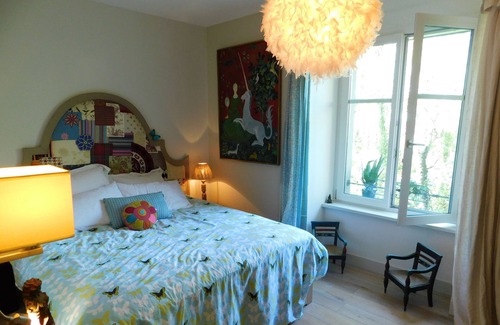 with a panoramic view of the lake and the alps from the lounge, and a country view of the gardens of a mansion, rooms to sleep, you can discover the beauty and charms of the city of neuchâtel The apartment of 200 m2 has been designed in a loft spirit with a living room, both spectacular in its dimensions and cozy because of the aesthetic choices made. 3 beautiful bedrooms and 2 charming bathrooms complete this apartment. All materials are noble and natural, (parquet, travertine stone, wood, leather, silk curtains, linen and cotton).