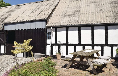 The holiday apartment is located on a farm near Jueslminde. You can enjoy a unique view of As Vig and the peninsula from the property. There are petting animals on the farm: rabbits and cats. Chickens are also kept. You can bring your own horse, for an extra charge there is a medium-sized horse box. The apartment has an eat-in kitchen, a beautiful double room and a bedroom with bunk beds, there is also a sofa bed in the living room. Directly in front of the living room is a terrace with a gravelled surface and garden furniture.