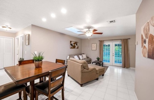 Your family will be close to everything when you stay at this centrally-located home away from home. Only a short drive from Orlando theme parks like Disney and Universal; and a short drive to the beautiful beaches. You can experience a new adventure everyday. Featuring a large private fenced-in yard and screened patio you will be able to enjoy the sunny Florida weather during your stay..