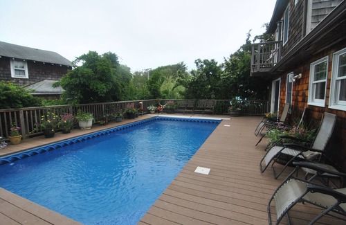 Centrally located just 5 minutes to beach and downtown Ocean Beach, this house has a true resort feeling, featuring a heated swimming pool, chaise lounges, sectional outdoor seating, dining for 10, oversized grill, and shower and commode on the outside. Interior features include gorgeous reclaimed hardwood floors, kitchen with Viking range, central AC and heating and WiFi.
