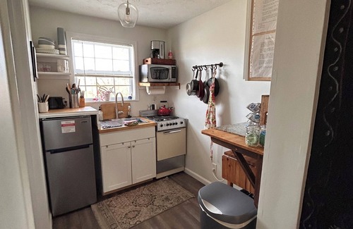 This quaint little cottage is located on the Bourbon Trail of Kentucky on a historic property. A mere 9 minutes from Six-Mile Distillery, it is also in close proximity to a gas station, grocery and library. Located in the heart of an Amish community, you will hear horses and buggies clip-clopping past as you sip your morning coffee. This cottage is on a functioning farm with horses, cats, goats and a donkey, with overnight housing facilities for your own equines as well.