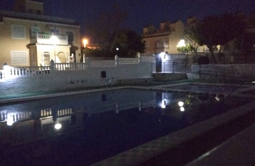 it also has a porch with table, chairs and barbecue, includes sheets, towels and utensils, capacity 6/7 people Urbanizacin pribada with parking street apie, pool, gardens, very well connected with public transport, just 10 minutes from Alicante airport. Beach about 900 meters approximately.