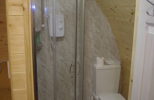 Glamping pod with en suite shower room, mini kitchen with all utensils and crockery. seating and dining area, beautiful location within walking distance to local pub, shop and cafe. Private decked area outside ..