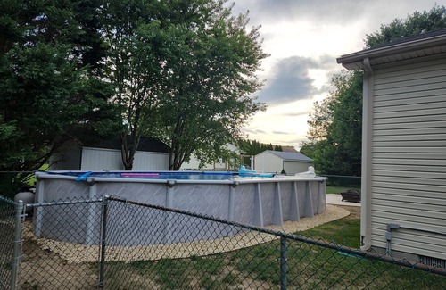 outside space - step outside to grill and eat on the deck or move down to the patio and enjoy the firepit and above ground pool (in season) The backyard is fenced for your convenience and the large driveway accommodates several cars and boats.