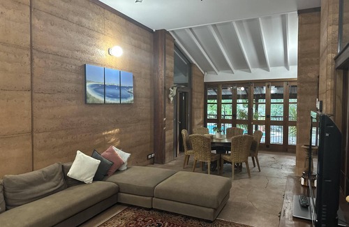 This property can only be described as a budget level holiday for two family's, it hosts easy care living with cool rammed earth walls and floors, very rustic.
