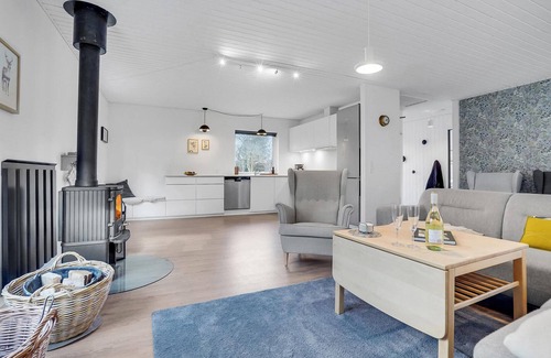 this typical scandinavian vacation home was only completed in 2022 - here you have it quiet and comfortable, and can look forward to contemporary, coherent equipment In the open, bright living area in front of the fireplace or on the terrace you will always find a comfortable place to relax.