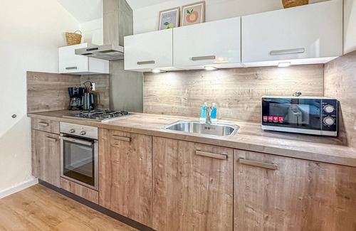 be welcomed by the bright and tasteful furnishings Relax on the cosy sofa, watch TV or read a book in the peaceful atmosphere of the living area. Take advantage of the open-plan design of the room, which creates a friendly ambience. Prepare your favourite dishes in the well-equipped eat-in kitchen and enjoy meals together at the large dining table.