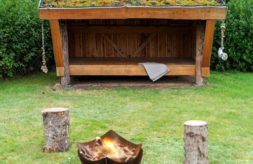 take your holiday life outside onto the terrace The spacious lawn invites you to play ball games, while the shelter hut is a lovely retreat. In the evening, the whole family can get together around the small fireplace.