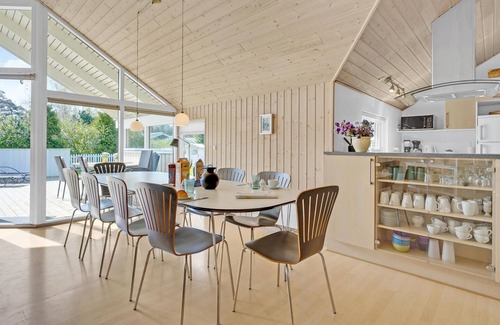 this beautiful holiday home is located near marielyst, which is a real natural gem with its kilometre-long white sandy beach and the bøtø forest Inside, you will find a bright, comfortable interior that makes a well-kept impression. Spend cosy hours with your loved ones in the spacious living room with window front, whether over delicious holiday meals or sociable board games with the crackling sounds of the fireplace in the background.