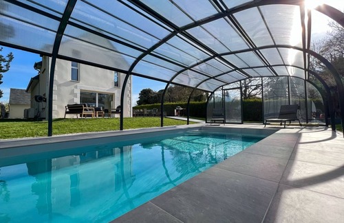 Beautiful house with pool near Saint-Cast beaches is located in Saint-Cast-le-Guildo. Beautiful house with pool near Saint-Cast beaches provides accommodation, featuring TV, Private Pool, Balcony/Terrace, among other amenities. This House features TV, Private Pool, Balcony/Terrace, to make your stay a comfortable one.