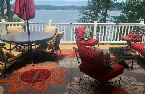 the entire 3,300 sqft house has recently been refurnished and beautifully decorated A large private dock at twelve feet deep... dock complete with a jump platform. and a small sandy beach line. Included in the rental are 2 kayaks, a paddle board and a five person paddle boat. The boat house is stocked some fishing gear kayak paddles and plenty of life vests in various sizes many noodles and lake floats.