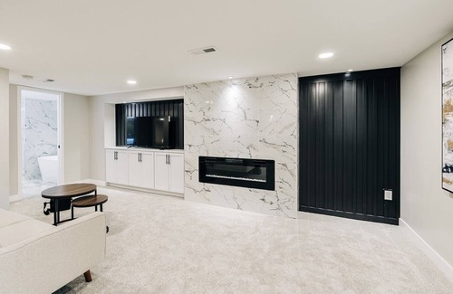 fully "gut" renovated and reframed, it was transformed to a modern, luxury, open design concept but within a warm and comfortable home Furnished with stylish modern decor features quartz countertops in the kitchen and second living room. Each of the 4 bedrooms has queen-size beds for cozy and relaxing sleep with plenty of closet space. Check out the designed accent walls in bedrooms and around the walls. Additional 2 couches offer alternative sleeping options. Watch your favorite shows on Roku HDTV in every bedroom room and living room. Complimentary washer & dryer in unit for your convenience. We are confident that you'll love staying in our home and experiencing all that Cottage Grove and the area has to offer. book your stay today!