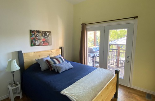 Our much loved lakehouse on Healey Lake has the perfect layout for two families or three couples! We designed the space to have separate “wings” for the utmost in sleeping privacy. All bedrooms have walkouts and stunning views of water, water, water! The Master bedroom on the west side has a king bed, ensuite with shower, flat screen tv with satellite, and an exit to a private deck area.