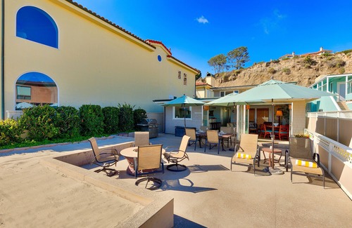 this lower-level property features a deck with a sweeping ocean view High-top stools at the kitchen bar make eating together easy, especially with additional seating on the deck. Here, you can come to relax and ride bicycles along the coast path to Dana Point Harbor. Have a barbecue family dinner on the deck and watch the sunset, then enjoy the emerging starlit skies. Relax and reconnect as you bask in the magnificent views of the Pacific Ocean and enjoy the refreshing breezes.