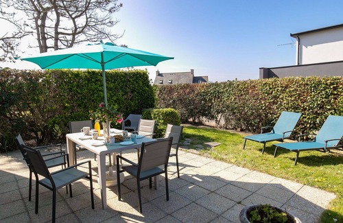 kervaliou,france offers a delightful vacation rental, house "an theven," boasting a private, fenced property spanning 1,400 square meters Immerse yourself in the serene setting of a lush lawn and wildlife garden, where you can unwind on the terrace amidst well-appointed garden furniture. Enjoy ample parking for two cars and seamless connectivity with Internet Wifi. Indulge in leisure pursuits with access to a tennis court within the vicinity.