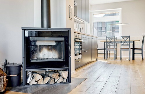 the property is a 3-room house spanning 68 square meters and spread over two levels The living room features a Scandinavian wood stove and a television. There is one room with a single bed and a double bed. Another room has a double bed. Additionally, there is an open gallery with a double bed.