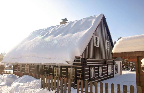 lánov country house offers a charming vacation rental experience in the heart of nature This detached, 2-story property, built in 1860 and renovated in 2020, provides a peaceful and sunny retreat in the countryside, just 4 km from Vrchlabí. The house boasts a spacious 500 m² fenced property with a beautiful garden, terrace, garden furniture, fireplace, and a barbecue house. Enjoy the convenience of on-site parking for up to 3 cars and amenities like a sauna, internet Wi-Fi, and a washing machine.