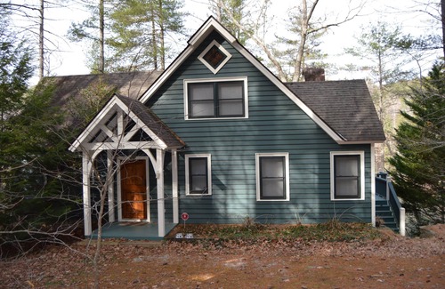 a slice of canada in the far northeast corner of georgia with mature hardwoods: tall white pines, spruce, hemlock and fir trees The house is settled on a slope with 100 steps through woods down to boathouse, and close to dirt road behind it. Property includes buffer of over 8 steep forested acres on Mt. Macy across dirt road .