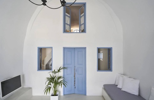 villa fava, one of the most prestige properties on santorini, consists of 3 individual apartments (2 ground floor canavas and one on 1st floor) that can be used either unified as one house of 194 m2 total area that accommodates up to 14 persons, or as three totally separated apartments called helios suite, gaia suite and aeolos suite All have specially insulated double wooden doors and with each compartment having its own bathroom with large showers and fully equipped Kitchens. The property offers 4 bedrooms with double beds and enough sofa beds to accommodate 6 more people! Also offering spacious areas for living, dining and sleeping and 3 spacious outdoor sitting areas under the vineyard and the white grape leaves. The apartment is furnished with 19th century wooden antiques, according to the traditional naval history of the first owners. The internal temperature varies from 21 to 24 Degrees Celsius throughout the summer period due to the bioclimatic vernacular construction of the residence. In the house you will also find Air-conditioning, 24-7 Wi-Fi access, iron and ironing board, 32 and 42 inch plasma TV’s with satellite channels, hair dryer, CD players with Classical Music CD's and multilingual Books. You are given the opportunity to live in Santorini like you own your private mansion.