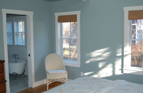 Be swept away in a dream-like 'Sconset home with beautiful landscaping and a modern, heated saltwater pool, catching the ocean breezes that are only a five minute walk away. Enjoy the views of the moors from the upstairs master bedroom deck, or sit out by the outdoor fireplace on our covered porch. We are just a short stroll away from all that 'Sconset borough has to offer, from the public beach to the 'Sconset Cafe, 'Sconset Market, and the Chanticleer restaurant. Enjoy all that beautiful Nantucket has to offer from our modern, air conditioned home, while also taking rest in the peacefuleness of Sconset..