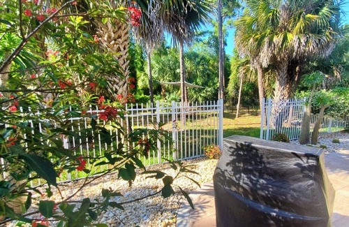 we are located next to kashi ashram, yoga school (open to take classes), walk the wooded trails and access boardwalks on the sebastian river Kayaks river rentals 2 minutes drive, Skydive Sebastian 1 mile away, local boat rental & tours 10 minutes. Atlantic beaches are 20 minutes drive, Melbourne & Vero Beach seaside towns & farmer markets, airboat tours 30 minutes. Not to forget Nature park trails all around & Intracoastal waterfront restaurants & bars just 10 minutes away..