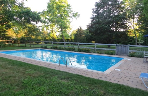 Located in Sagaponack, this home is ideal for an easygoing vacation with a swimming pool, tennis court and a large lawn for playing outdoor games. The South-facing deck has a grill and table for outdoor dining and overlooks the lawn. There is a light-filled open living room and dining area with high ceilings, and a separate kitchen. Two bedrooms are on the first floor. One has a queen bed and the other has twin beds. The third bedroom on the second floor has a queen bed. Each bedroom has its own bathroom. It is a quick 10-12 minute drive to Sagg Main Beach and Bridgehampton main street and a 15 minute drive to Sag Harbor and East Hampton. Poxabogue public golf course and driving range is a few minutes away. Our tennis court is hard surface (very usable and fun to have in your back yard, but well worn with a few cracks). A variety of children's and adults bikes are available in the basement. Please be sure to look carefully at the Amenities, Rooms, and Rule & Policies descriptions for more specific details. For bookings less than 30 days a mandatory Suffolk County tax of 5.5% will be charged. A minimum rental of 2 weeks is required during the summer and a minimum of a month off-season. IMPORTANT NOTE: Heat and electricity are additional for off-season renters per arrangement with owner. Utilities are included with summer rentals. For stays one month or longer, renters are expected to pay for our housekeeper to clean once a month..