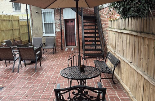 This beautiful two-level apartment is in a classic brownstone, right in the heart of Washington, DC and perfect for families, business travelers, or individuals. Fully equipped with key amenities, it's within walking distance of DC landmarks and public transportation. Spanning 2,200 square feet, the apartment offers cable TV in every room, Wi-Fi, a washer/dryer, and a backyard with a grill and seating area for your enjoyment.