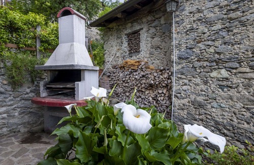 costiera dei cech offers a rustic, historical house "moncucco mountain home" in traona, italy This semi-detached property has two storeys and boasts a private, terraced garden with flowers, trees, a pergola, garden furniture, and a barbecue house. The vacation rental features a storage room for bicycles and a central heating system. Internet Wifi and Parking amenities are available.