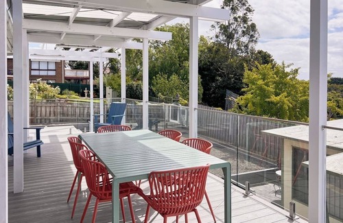 Just a 15-minute walk from the sparkling Portarlington Pier, this pet-friendly home places you near local favourite dining spots and the vibrant Recreation Reserve right across the road, where you can cheer on a local footy game. Inside, two retro-inspired living rooms, a TV with Netflix, an oversized deck, and a fully equipped kitchen set the scene for relaxation. Start your day kayaking at the pier or hop on a bus just two minutes away to explore the Bellarine Peninsula's charm.