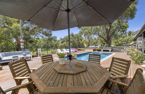 This idyllic 4-bedroom home is perfect for multiple large families. Presenting as new, this elegant property is perfect for a relaxing holiday or weekend getaway, styled with top quality furnishings. Renowned by all for its spotless presentation, it can comfortably accommodate up to 14 guests & offers wifi, spacious living, outdoor entertaining area as well as a solar heated pool. The home itself has 2 self-contained zones separated from each other. Whilst the owners continue to reside on the property during your stay, you will have exclusive access to the advertised living area including pool/deck. There will be no shared living zones and the owners will make you feel like you are on your own. There will be a family of 5 remaining on the balance of the property during your stay. Their kids know they wont be taking a dip in the pool whilst you are there but you may run into them at one of the local surf spots. The home itself is set out on the one level and in the following manner Master bedroom - Queen Bed with TV, Walk in Robe and En-suite Second bedroom â Queen Bed with Built in Robe Third bedroom â Queen Bed with Built in Robe Fourth bedroom â 2 x Tri-Bunk Beds and 2 x Single Trundle Beds Main Bathroom â Bath, Shower and separate toilet/powder room. European Style Laundry â Samsung Washing Machine, Simpson Dryer, Vaccuum, Iron-Board + Iron Kitchen â Electric Stove Top and Oven, Microwave, Toaster, Kettle, Standard Fridge and Bar Fridge and all the essentials for cooking Living and Dining Room â Smart TV, Fire Place with ducted vats to all bedrooms, Pool Table, Lounge and Dining Setting for up to 12 Guests Outdoor Entertaining Area â Outdoor Entertaining Area with Gas BBQ and Dining Setting Fully Fenced Solar Heated Pool with Outdoor Shower Ample On-Site Parking This property also comes with ceiling fans in all bedrooms as well as Wi-Fi for all guests to enjoy during their stay. The home has the benefit of being close to world famous beaches whilst having 10 acres of bush and a small paddock, home to 2 Alpacas. This idyllic family home is only a stones throw to Bells Beach or the family friendly Point Addis Beach. You can take a short drive to Torquay or Angelsea for restaurants, cafes and pubs. Local walking tracks such as the "Iron Basin" are a must. Book now to avoid disappointment! Please be advised that ALL linen is provided! Booking for Summer? We will take a 7 night minimum, Saturday to Saturday bookings ONLY : WEEK 1: Saturday 19/12/20 - 26/12/20 â Not Available WEEK 2: Saturday 26/12/20 - 02/01/21 â Not Available WEEK 3: Saturday 02/01/21 - 09/01/21 WEEK 4: Saturday 09/01/21- 16/01/21 WEEK 5: Saturday 16/01/21- 23/01/21 SORRY NO SCHOOLIES MATURE AGE FAMILIES, GROUPS and COUPLES ONLY. NOTE: OUTDOOR DOG ONLY policy with this property (subject to owner approval). Please note that this property is rural so does not have secure fencing.