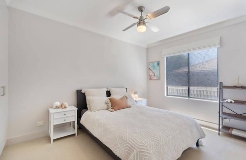 three comfortable bedrooms sleep up to six, with a spacious master suite enjoying a queen bed, tv, walk-in robe, ceiling fan and ensuite with shower, toilet and vanity plus direct access to the large covered patio Bedrooms two (double bed) and three (queen) are equipped with ceiling fans and built-in robes with easy access to a main bathroom with shower, bath, vanity and a separate toilet.
