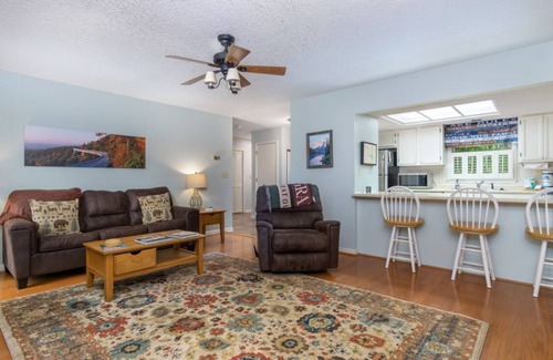 When you walk in the front door of Bent Creek 9, resist the urge to walk right out to the back deck. Instead, take in the warm ambiance of this well-appointed home, featuring a fully-equipped kitchen with modern stainless steel appliances for effortless cooking. You'll notice everything is on one level here. Each bedroom has a comfortable king-size bed and a private bath, one having a walk-in shower. While Rumblng Bald will be your home base for adventure, the back deck of Bent Creek 9 will be your retreat for basking in the area's natural beauty. You have left your normal cares behind, but, if you must, you can connect with friends and family with a dedicated WIFI..