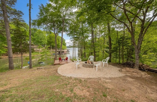 Come enjoy the "Best of Both Worlds" with a protected cove to main lake views! This lovely lakeside home offers 5 bedrooms and 3 full bathrooms. It has a screen porch to enjoy your morning coffee or an evening drink overlooking the water. A gourmet kitchen to prepare delicious meals and a family room downstairs with a wet bar, fireplace, darts, and ping pong for your entertaining fun. Outside there is a covered patio, a lakeside fire pit, and a great boat house for swimming (9ft). There is a bunk room on the 3rd floor for the kiddos to enjoy! There are day passes available at a community pool! Two Kayaks and Pedal Boat to use and enjoy the lake. Enjoy the new fiber optic wifi that was just rencently installed. What are you waiting on? Book with us now!.