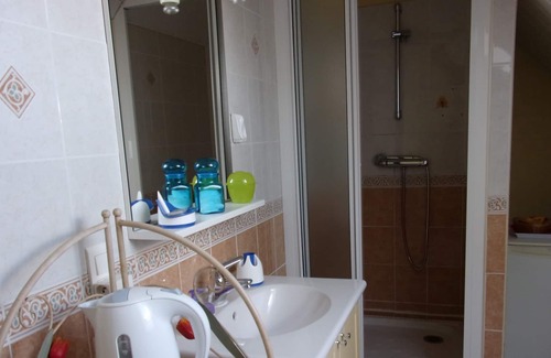 this cottage adjoining our home includes a terrace, a large veranda serving dining / living room, kitchen, 3 double bedrooms, 1 bedroom with 2 twin beds, 3 bathrooms and 3 toilets One of the rooms is located on one level and is equipped with a walk-in shower, so accessible to people with difficult mobility.