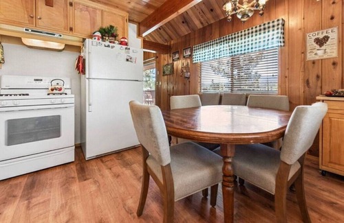 Escape to this charming cabin nestled in the heart of Big Bear! With its rustic charm and modern amenities, this inviting retreat is perfect for family getaways or romantic escapes. Enjoy breathtaking forest views from the spacious deck, cozy up by the fireplace in the inviting living room, or prepare meals in the fully equipped kitchen.