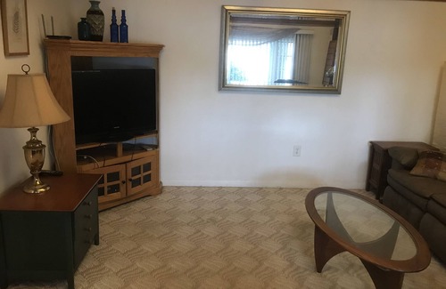 family vacation home on big squam lake with one assigned dock slip and shared beach area Knotty pine cathedral ceilings and comfortable living spaces with views of Squam Lake. Queen bed in master bedroom, and twin bunk beds next to queen bed in second bedroom. Guests provide own towels, sheets, and linens. 1/2 mile from center of Holderness, with restaurants and general stores. Short walk to Squam Lake Science Center.