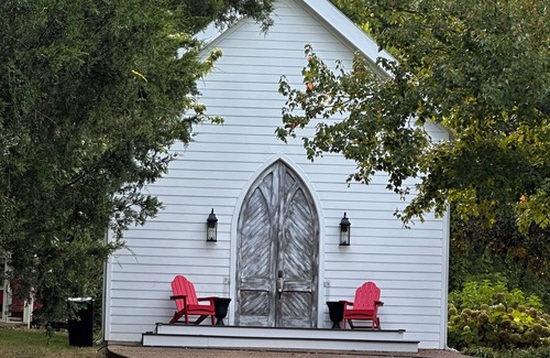 Our cozy guest house sits at the end of a winding country lane lined with black fence. You may spot some horses along the way. The house sits adjacent to our main home but is very private. It has soaring ceilings, hardwood floors, quartz countertops and a new nicely appointed kitchen. Enjoy restfull sleep in your king size bed complete with Tempur-Pedic mattress and luxury linens. Sip your coffee in your provided robe and slippers on the porch or under the trees. 9 minutes to town..