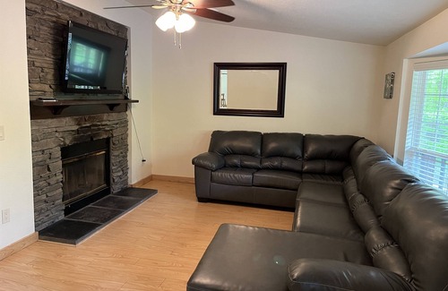 every bedroom has a 32" flat screen tv and there are two different 42" flat screen tvs in the common areas Black Moose sits in a private setting of 15 acres - plenty of room for a team party. Ample outdoor seating and dining.