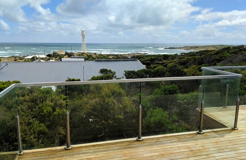 a large deck extending from the second storey offers complete privacy, breath-taking panoramic views of the southern ocean, currie lighthouse and golf course, complete with a large hot-tub The perfect location to unwind at the end of the day, watching the sun set behind the lighthouse with a glass of wine in hand.