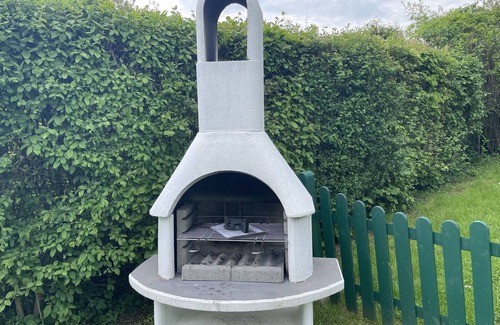 layout: on the 1st floor: (bedroom(double bed), bedroom(double bed, double sofa bed)) living room(tv(satellite), dvd player, radio, cd player), kitchen(dining table, hob(4 ring stoves, ceramic), toaster, coffee machine, oven, microwave, dishwasher, fridge), bathroom(shower, toilet), balcony, heating(electric), terrace, garden(private, fenced), garden furniture, bbq(charcoal), parking, high chair, baby crib(free)