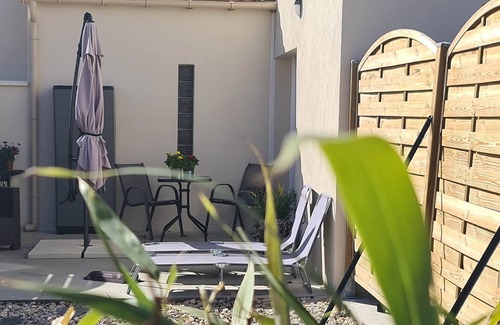 New 25 m2 apartment with mezzanine bedroom in a villa at the foot of Sainte Victoire. The garden, the terrace and the swimming pool offer a superb view of this magnificent site. The apartment is very bright and fully equipped and air conditioned. Parking is free in the enclosed courtyard. The shared swimming pool for the 3 apartments. Barbecue, lounge and garden deckchairs The accommodation is intended for 1 couple and is not suitable for children. Animals are not allowed.