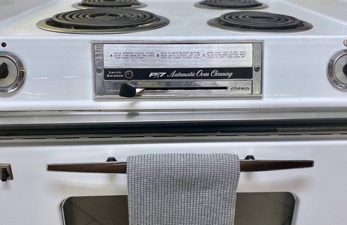 the kitchen is stocked with everything you should need to prepare a meal or enjoy take-out from one of lubbock's many restaurants Our vintage stove adds a touch of character to the fully equipped kitchen. The attached dining table will seat 6 guests so that you can enjoy your meals or play a game together.
