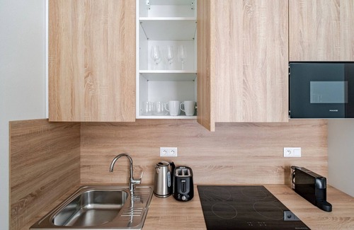 in this apartment, you’ll find a thoughtfully designed space complete with beautiful furniture and a fully equipped kitchen in this one bedroom property And, thanks to our superior quality mattresses, luxury linens, and towels, you can relax knowing you’ll always feel comfortably at home. When you’re ready for some fun, you can take in the Prague vibes or bring the entertainment to you with the premium wireless speaker or smart TV.