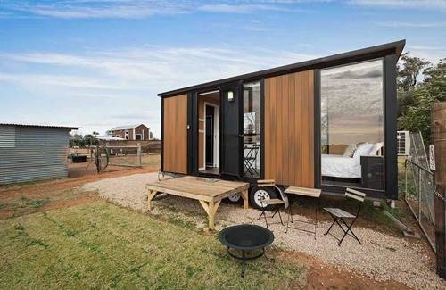 bluestone alpacas: theodore’s corner by tiny away is located in the rustic countryside of merbein, the closest city, mildura is 12 minutes away Our secluded tiny home comfortably accommodates up to two guests. Upon entering the main driveway, continue past the carport—you’ll find the first tiny house tucked behind a polished tin and bamboo fence.